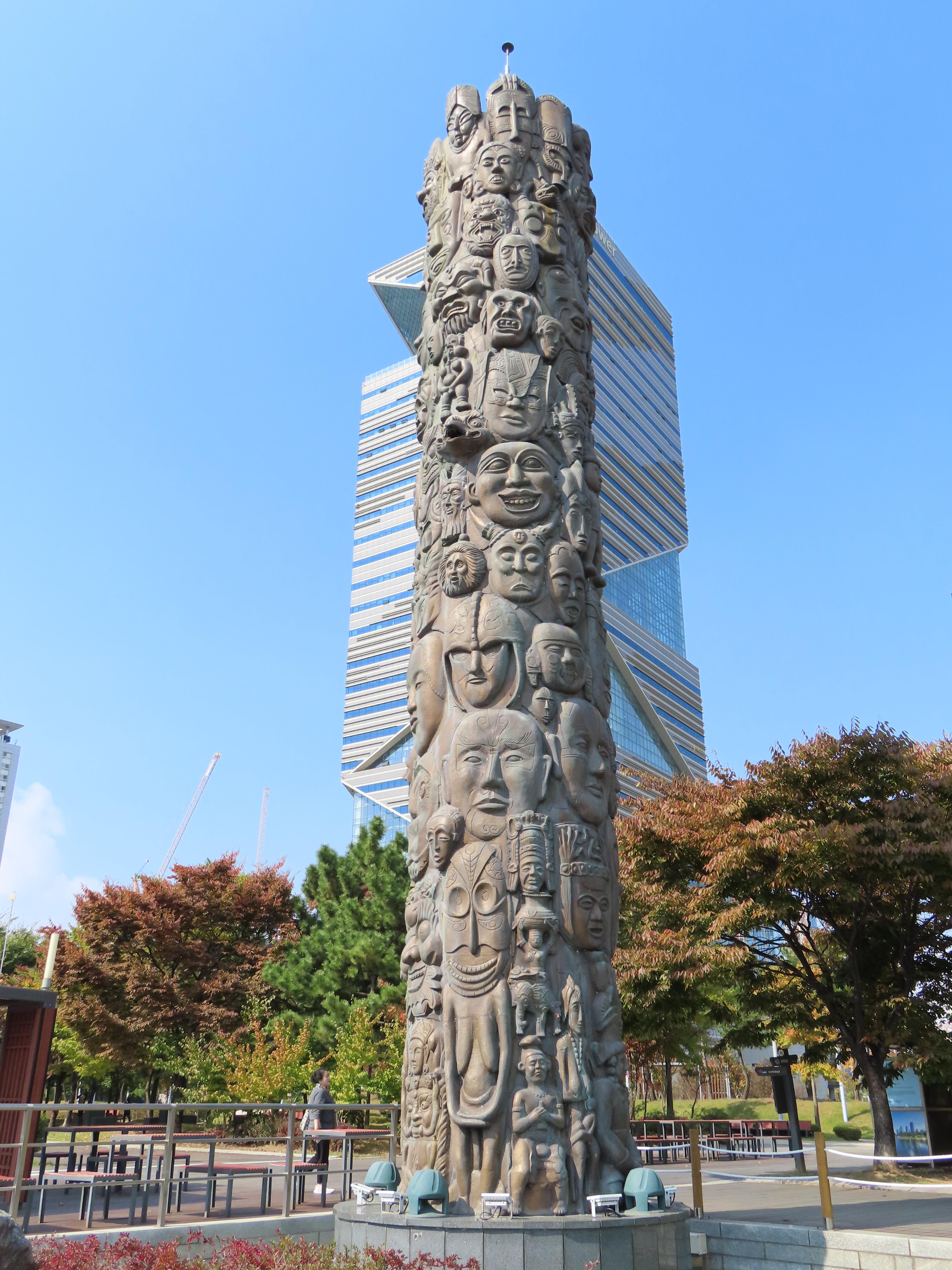 조각품의 이름이 "지구촌의 얼굴"이라고 합니다.