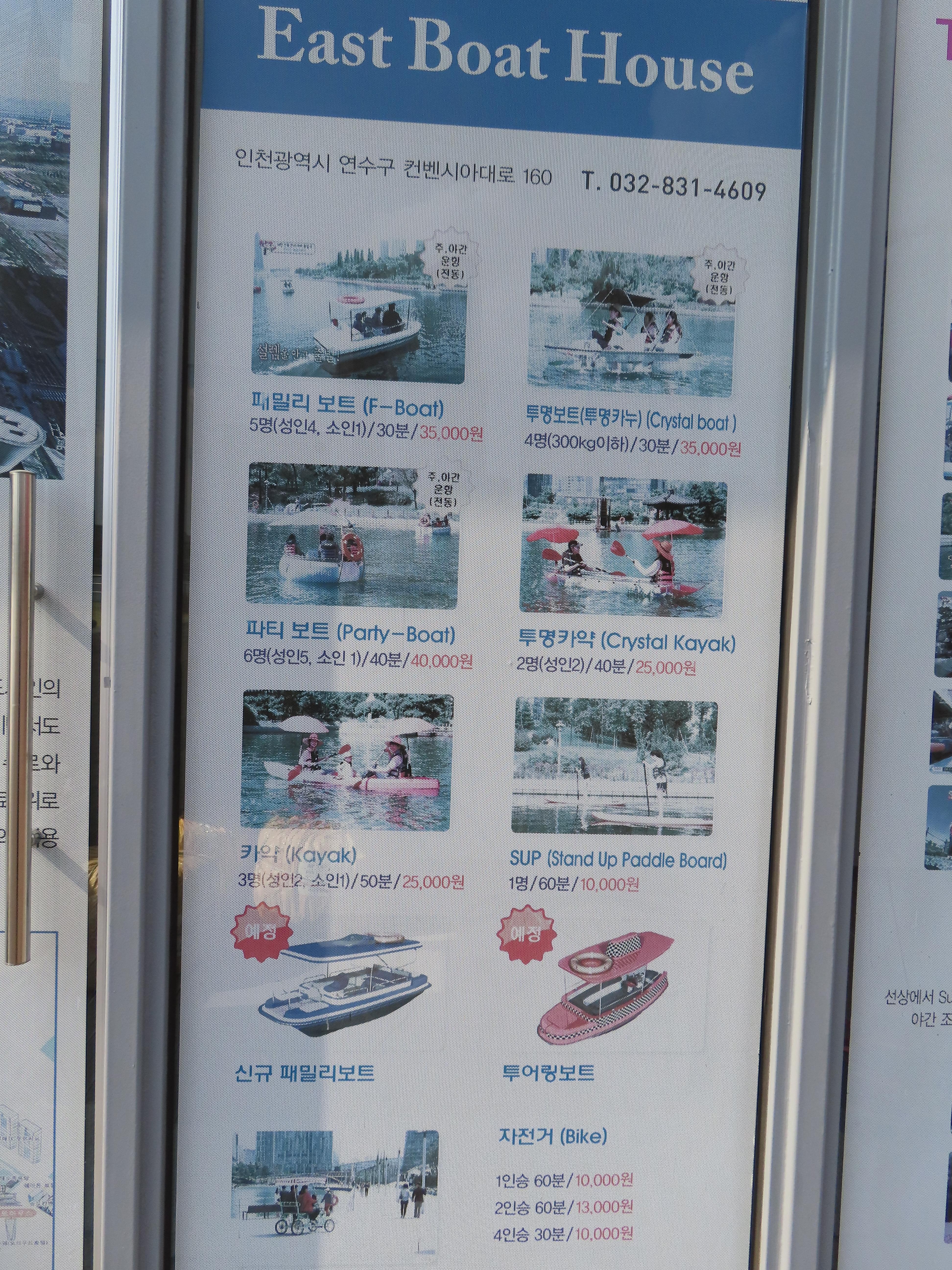 공원 안에 있는 배를 타는데 필요한 경비가 홍보되고 있으며 ~~~